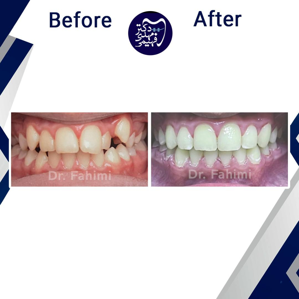 کیس درمان ارتودنسی بدون کشیدن دندان به منظور اصلاح دندان نیش بیرون زده